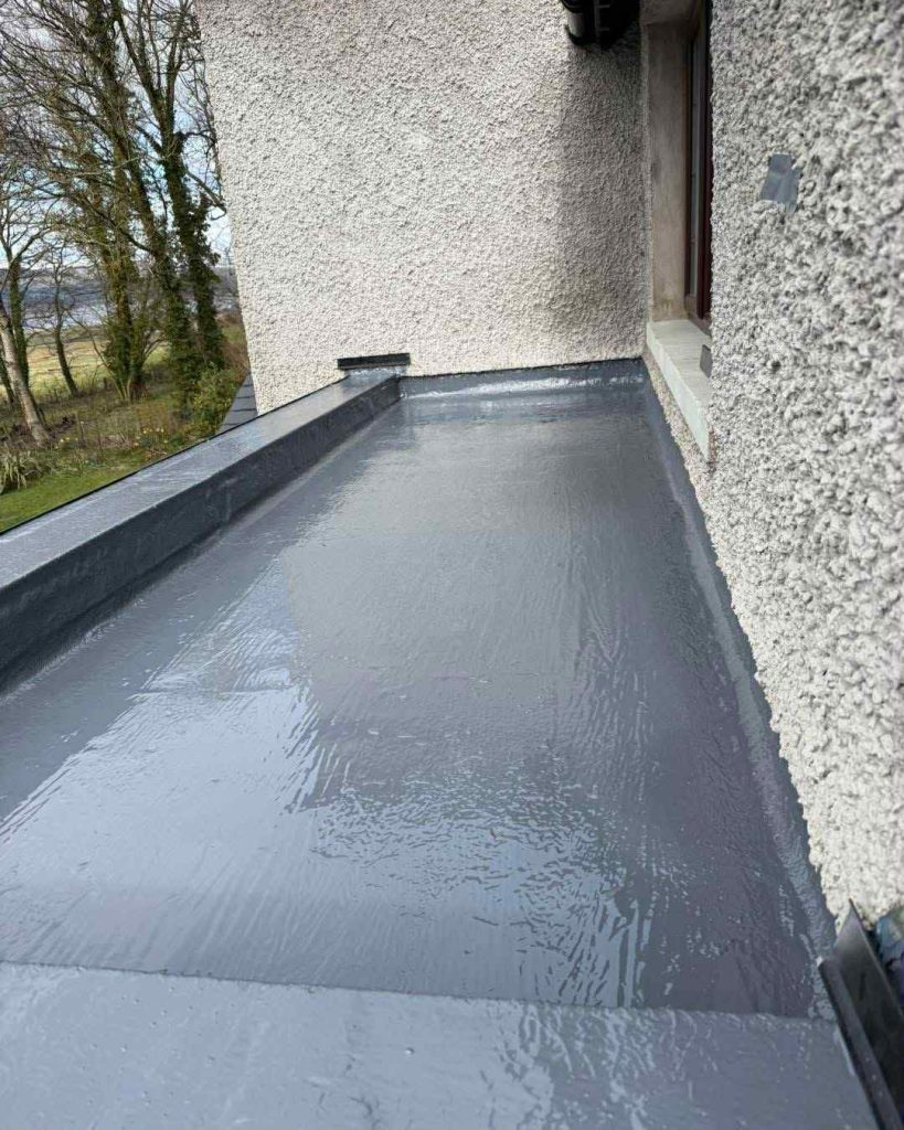 One of the main benefits of fibreglass roofing is its seamless construction. Unlike traditional felt systems that rely on overlapping layers, fibreglass is applied as a continuous surface. This significantly reduces the risk of water ingress and creates a robust waterproof barrier that performs well in areas exposed to frequent rainfall. For properties in Grange, this makes fibreglass roofing a practical and dependable choice.